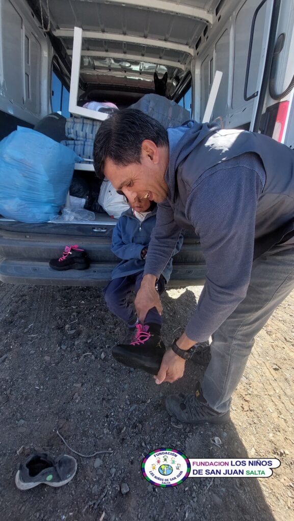 En esta oportunidad visitamos a Wilver y su mamá, una joven madre que vive sola con su hijo en la Puna Salteña. Durante la jornada entregamos calzado, sábanas, frazadas y ropa de abrigo, acompañando con nuestro apoyo a esta familia que enfrenta la vida en condiciones de gran aislamiento. 🌵
