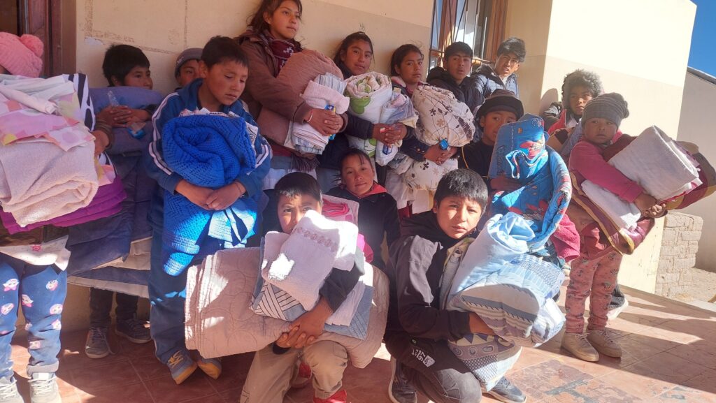 En esta oportunidad entregamos: acolchados, frazadas, sábanas, toallas, toallones, pasta dental, cepillos de dientes, libros y cartillas de estudio.